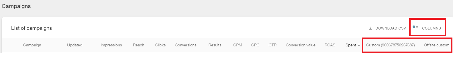 If you want more detail, customize your metrics table from the Columns button in the top right corner. From there, you can add additional conversion metrics or any others available for your campaigns.