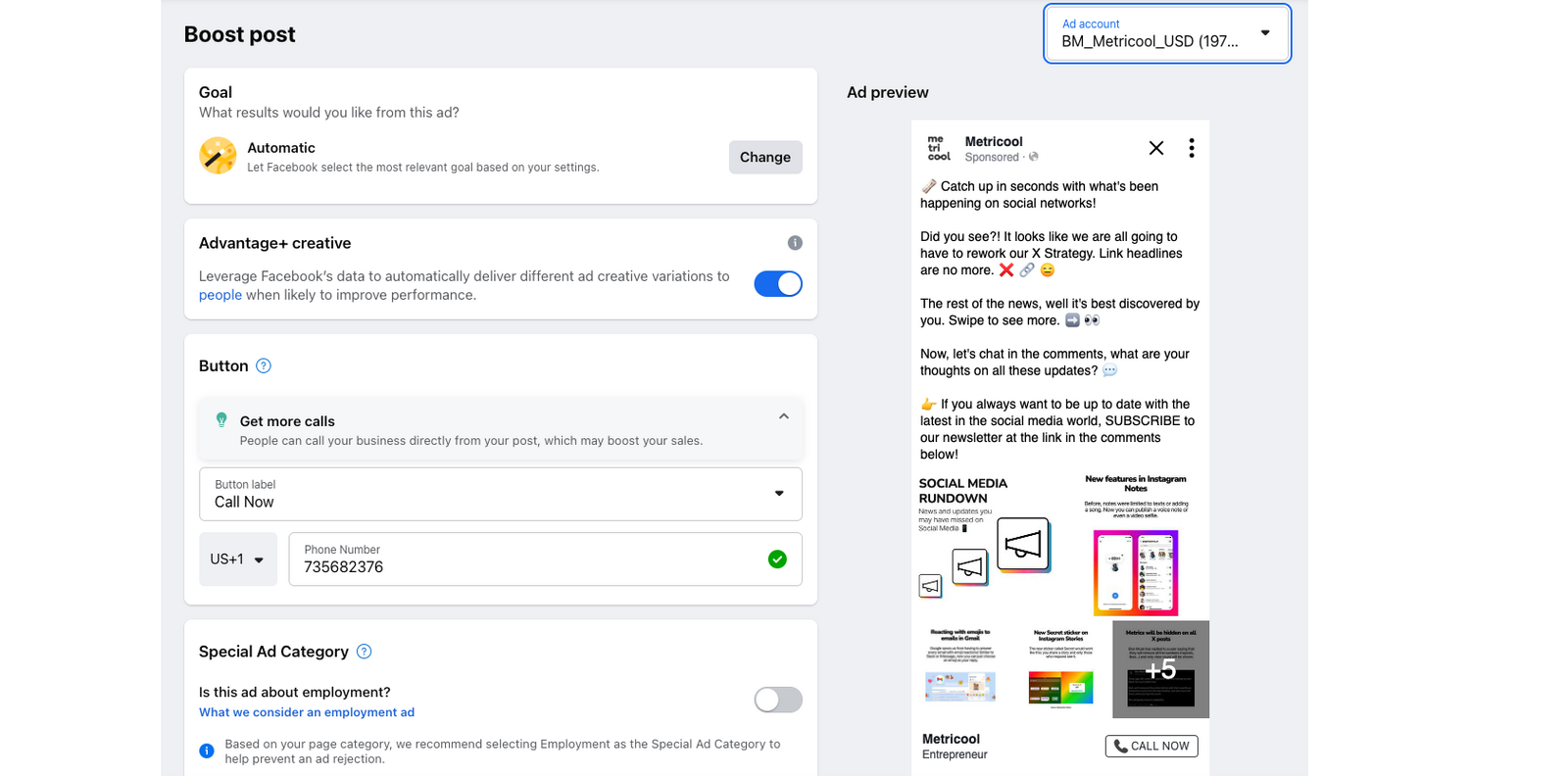 You can boost your posts from Metricool, check the step by step here.