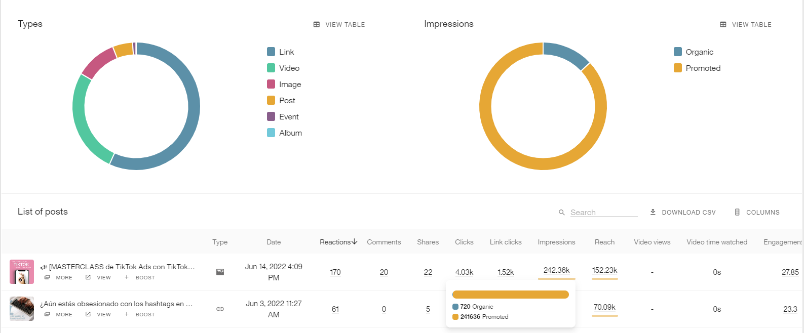 In the analytics section you will be able to see the results of your boosted posts.