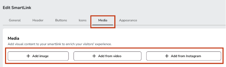 Inside Edit SmartLink, open the Media tab.
