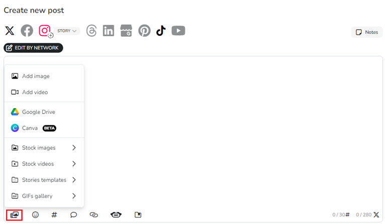 In Metricool, you have different options to add multimedia content: