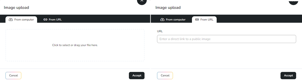 Add image or video: Add your files from a device or via a URL.