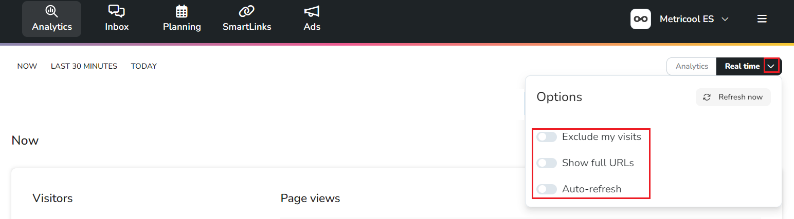 Once the verification process is completed, the website will be connected to Metricool, and from that moment on, you will be able to view real-time visits.