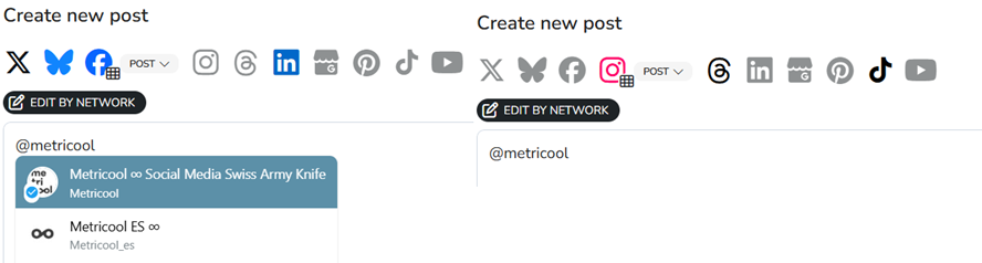If you need to mention the same account on different social networks, click on edit by social network and change the mention on each tab.