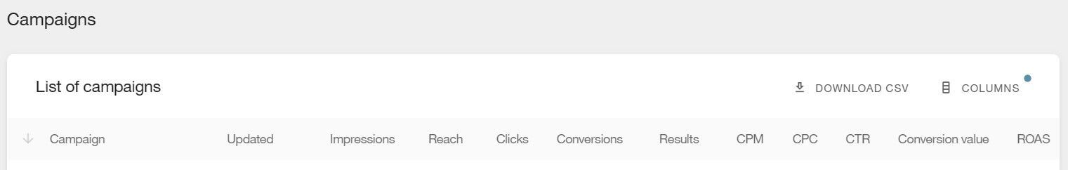 💡 In the "Columns" button of "Campaign List" you can see all available metrics of your campaigns.*