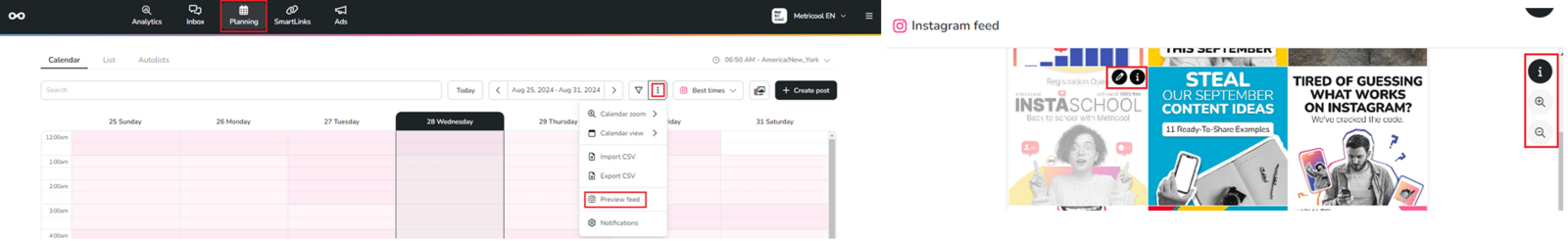 This feature will help you visualize the design of your Instagram Feed with the scheduled posts in the calendar.