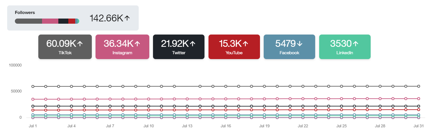 A summary of all social network accounts connected to Metricool: there is a sum of all metrics and individually ordered from highest to lowest.