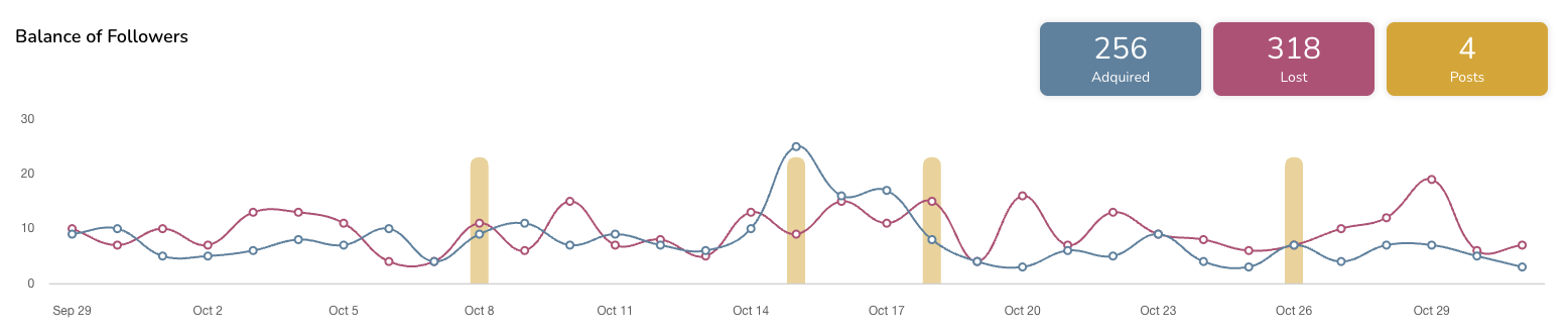 The follower balance lets you see how your community evolves day by day within the selected date range.